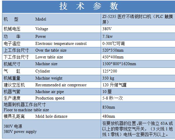 設(shè)備型號(hào):ZJ-5235醫(yī)療吸塑封口機(jī)(PLC觸摸屏)